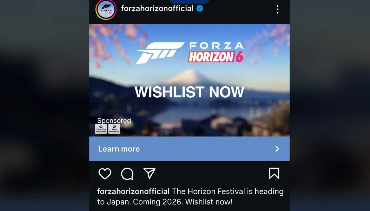 Официальный аккаунт Forza Horizon рекламирует новую игру в Японии с релизом в 2026 году